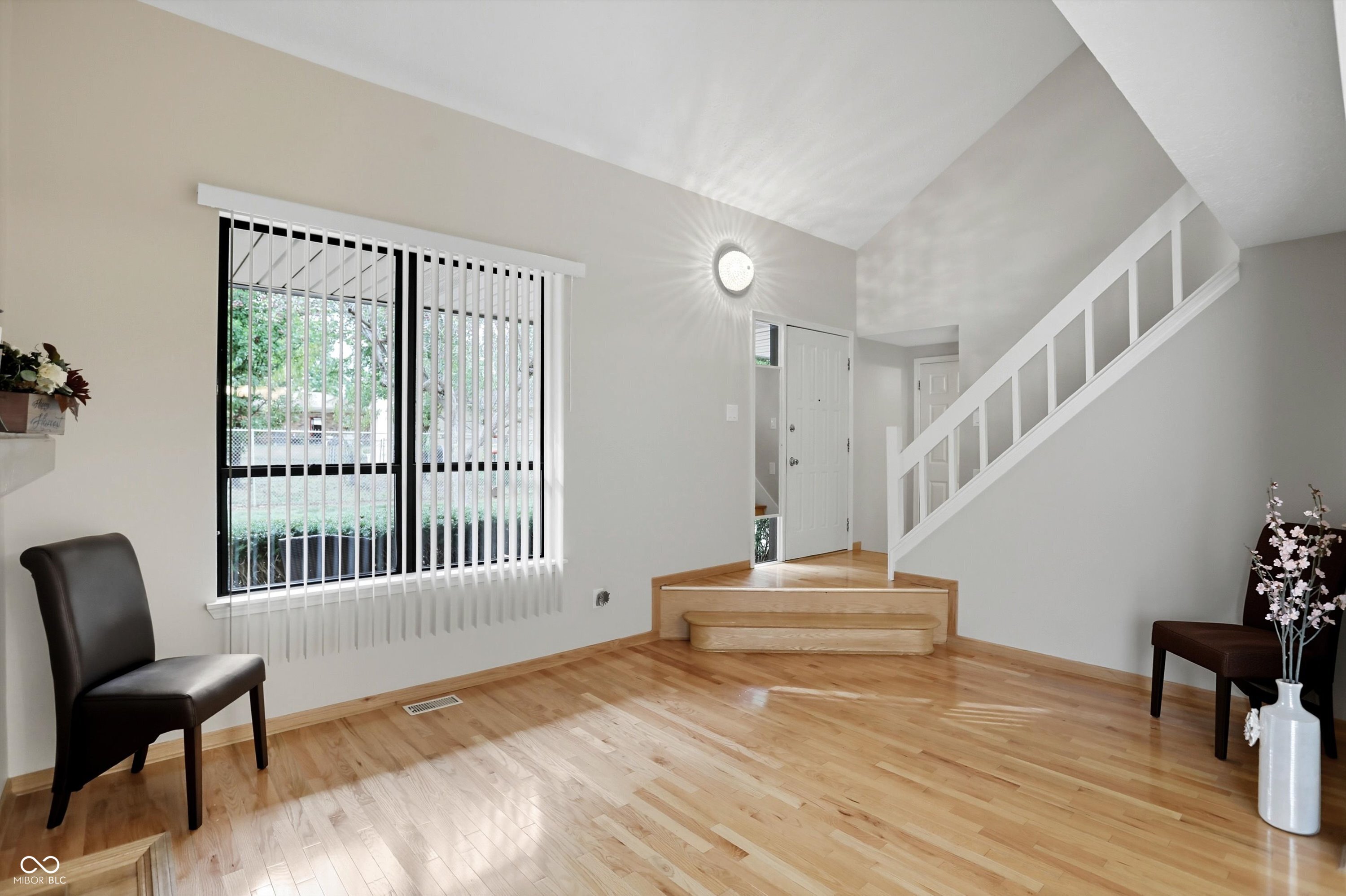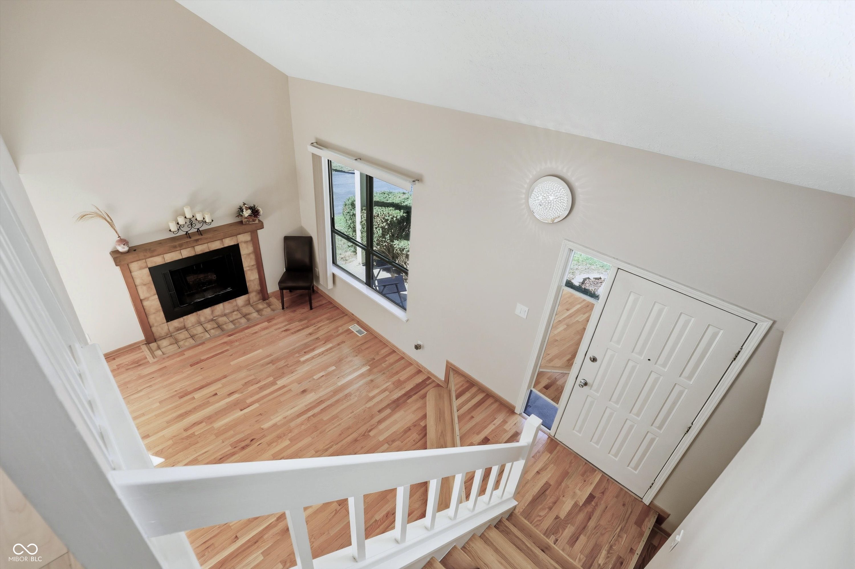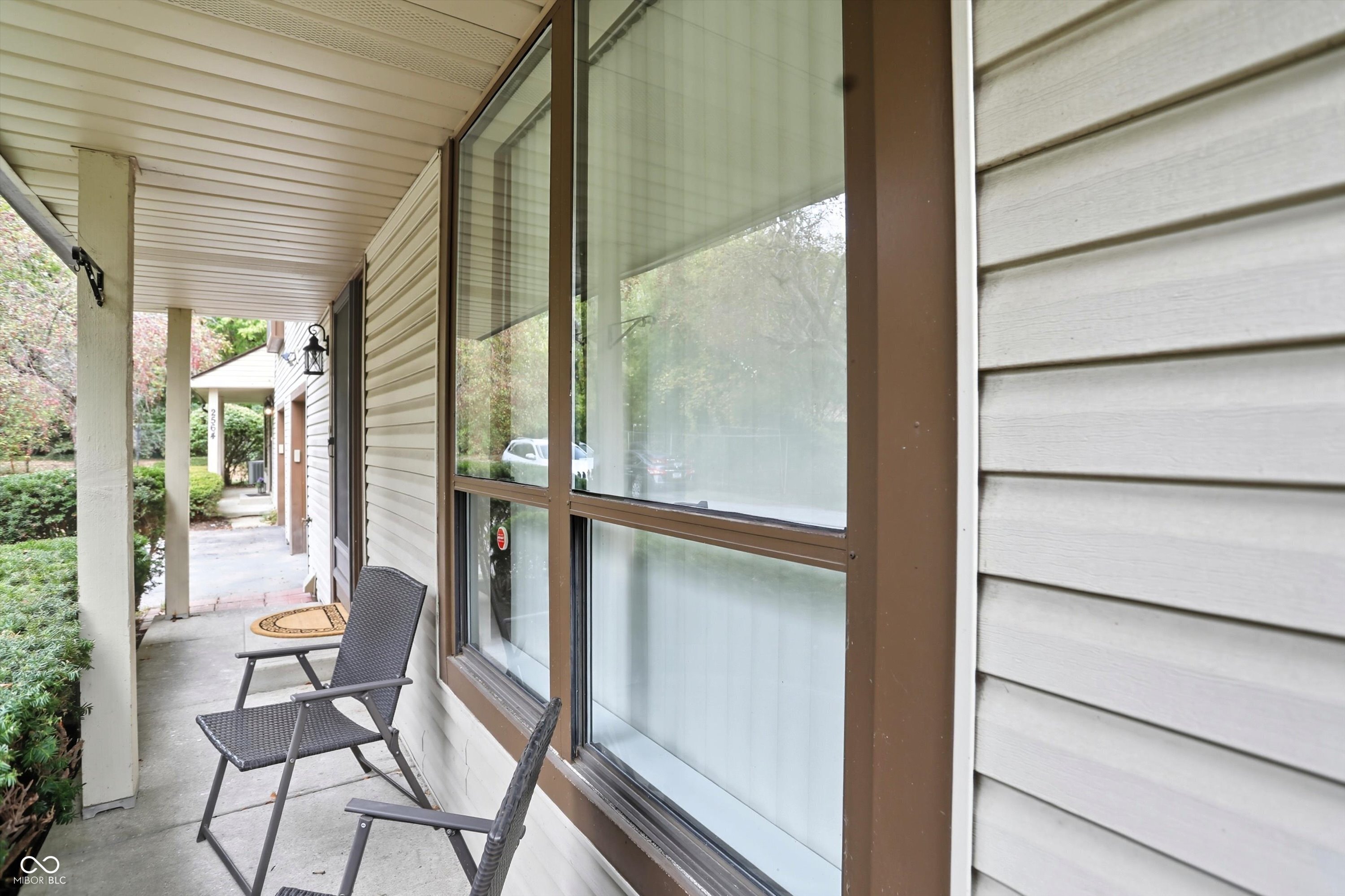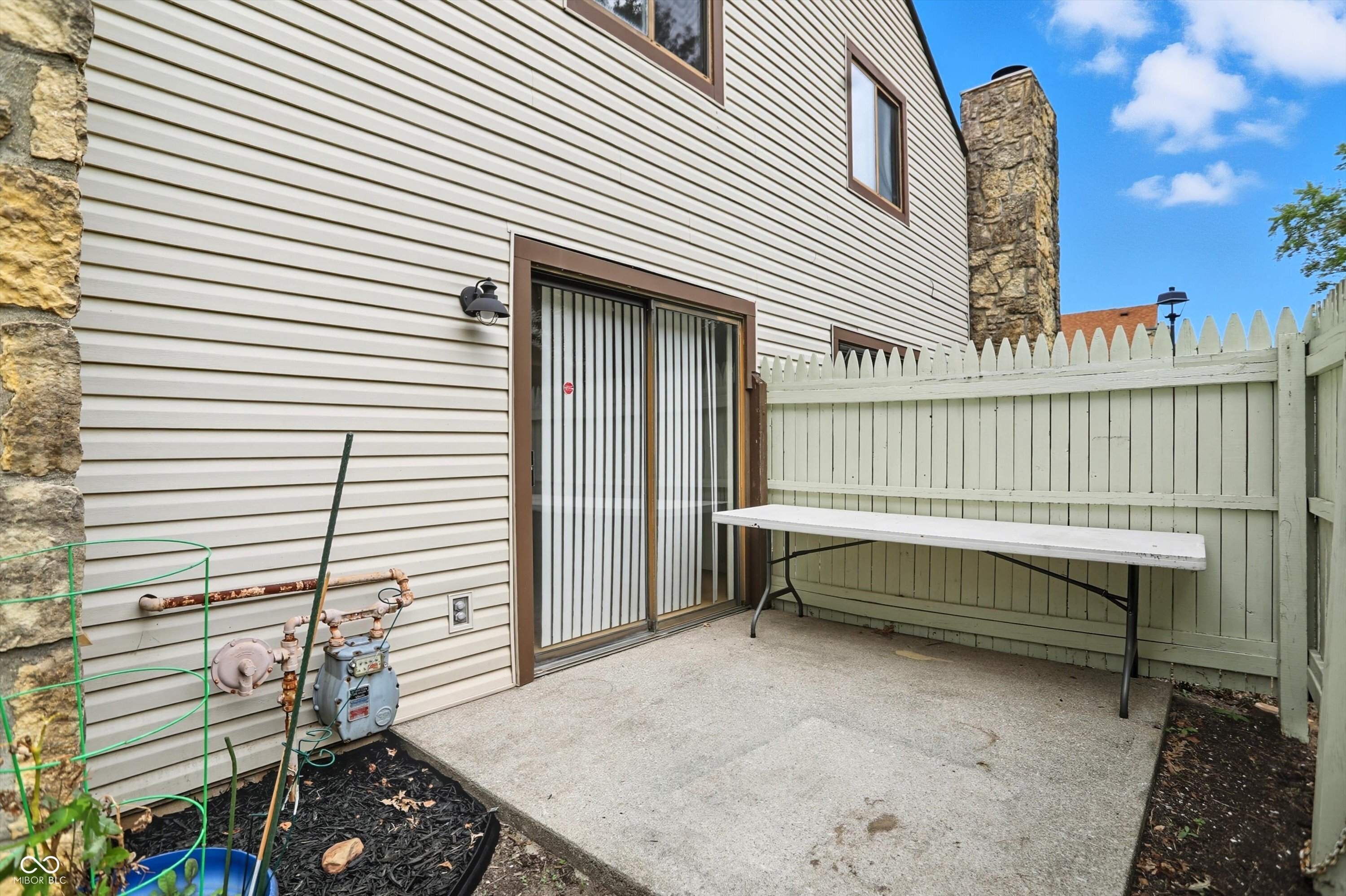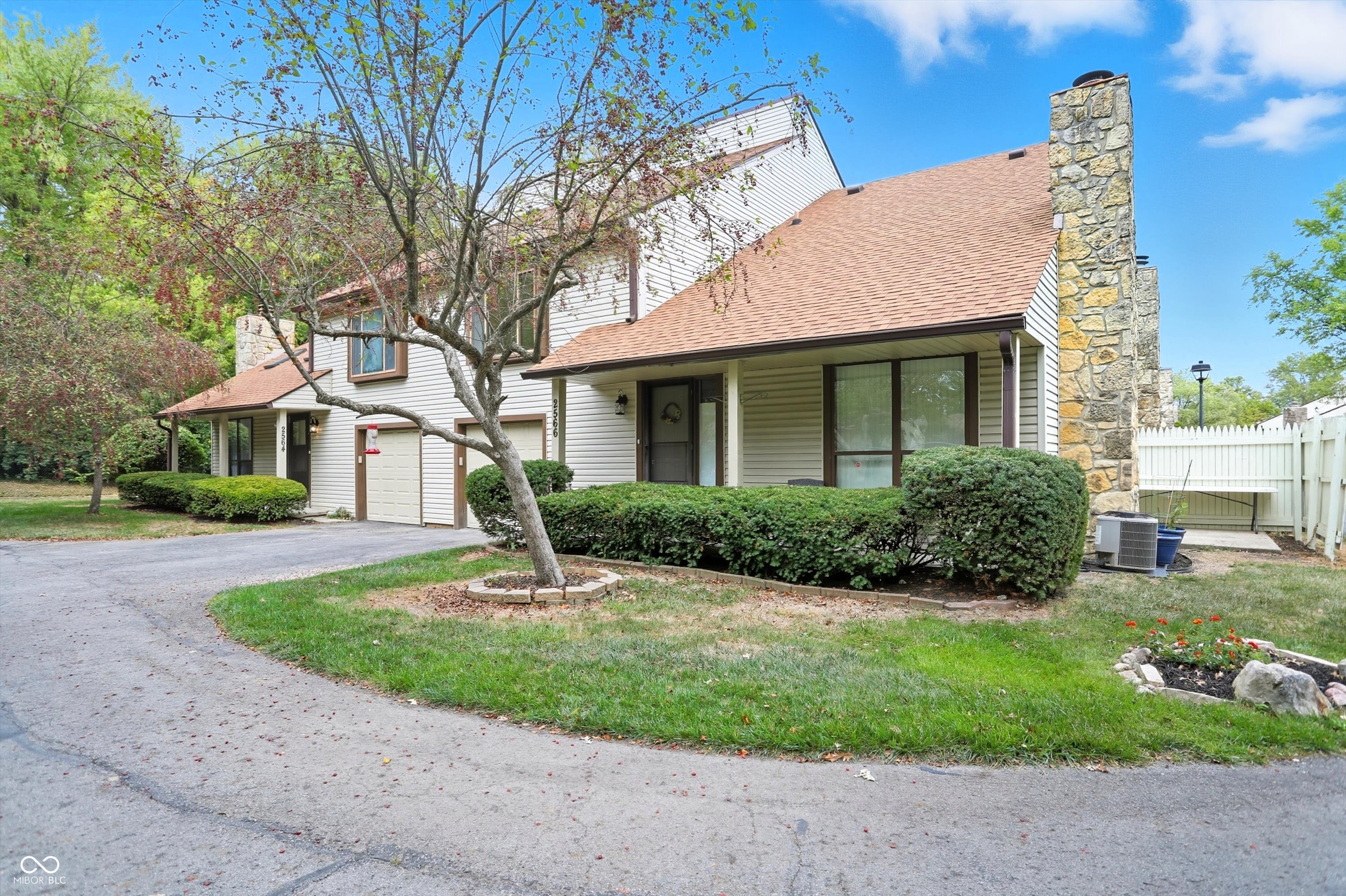You will love this cute as a button home in The Hideaway condominiums. This charmer is freshly painted, move-in ready and has so much to offer! 2 story airy great room with cathedral ceiling and wood burning fireplace leads you to the dining room. Gleaming real oak hardwood flooring on the main level. Beautifully updated eat-in kitchen with modern cabinets, granite counter tops, tiled back splash, double sink, carbon block filter. Generous size master bedroom with walk-in closet. Pristine bathrooms have tiled flooring. Tacked in the back of the neighborhood, the home feels like your own little private oasis. Plenty of space to enjoy outdoors: on the front porch or in partially fenced in back patio for your morning coffee or your steak for grilling aficionados. Fantastic location with minutes to restaurants, shopping centers, hospitals, I465 interstate. Freshly painted with all appliances included plus a water softener. Has attached garage and plenty of guest parking. Quiet community with low $185 management fee, so you can relax while the HOA handles exterior maintenance, snow removal, siding and roof repairs, street repairs, common area upkeep and trash pick up.